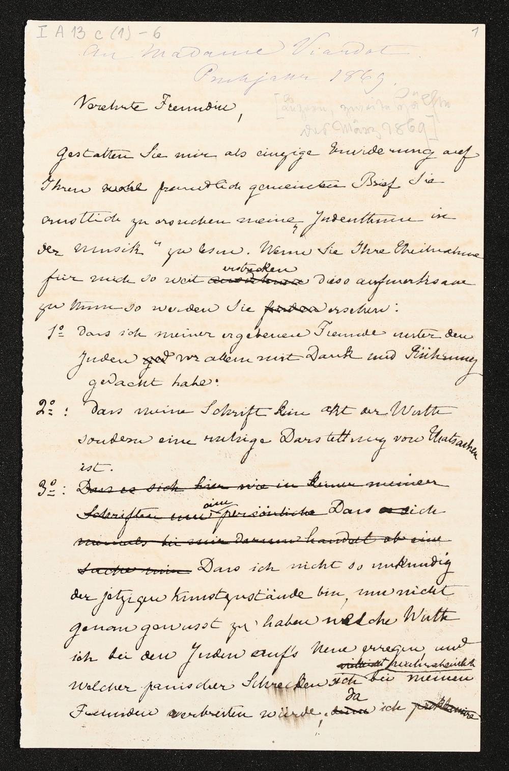 eigenhändiges Briefkonzept von Richard Wagner an Pauline Viardot
