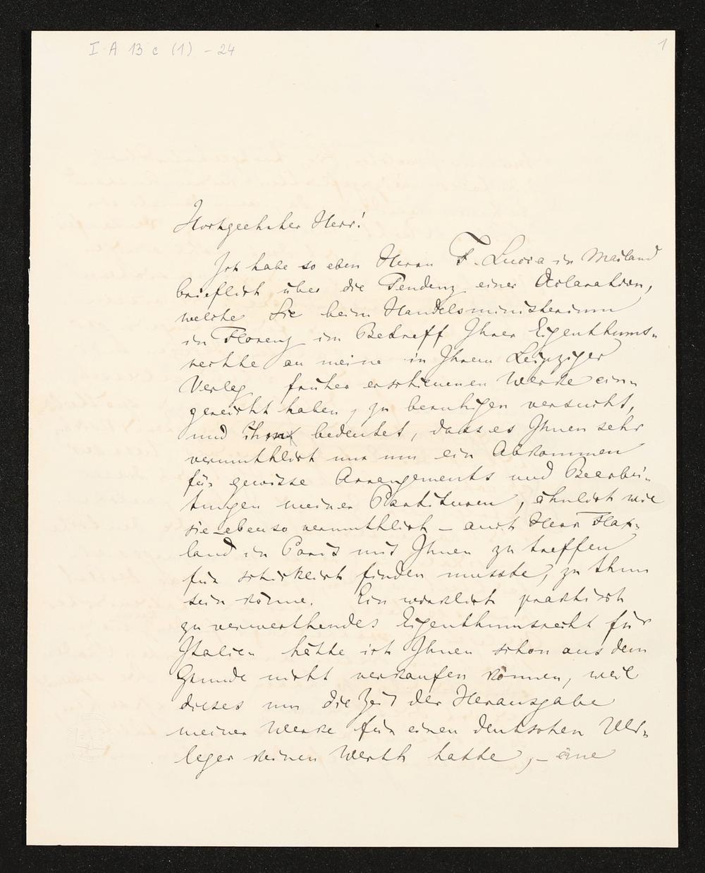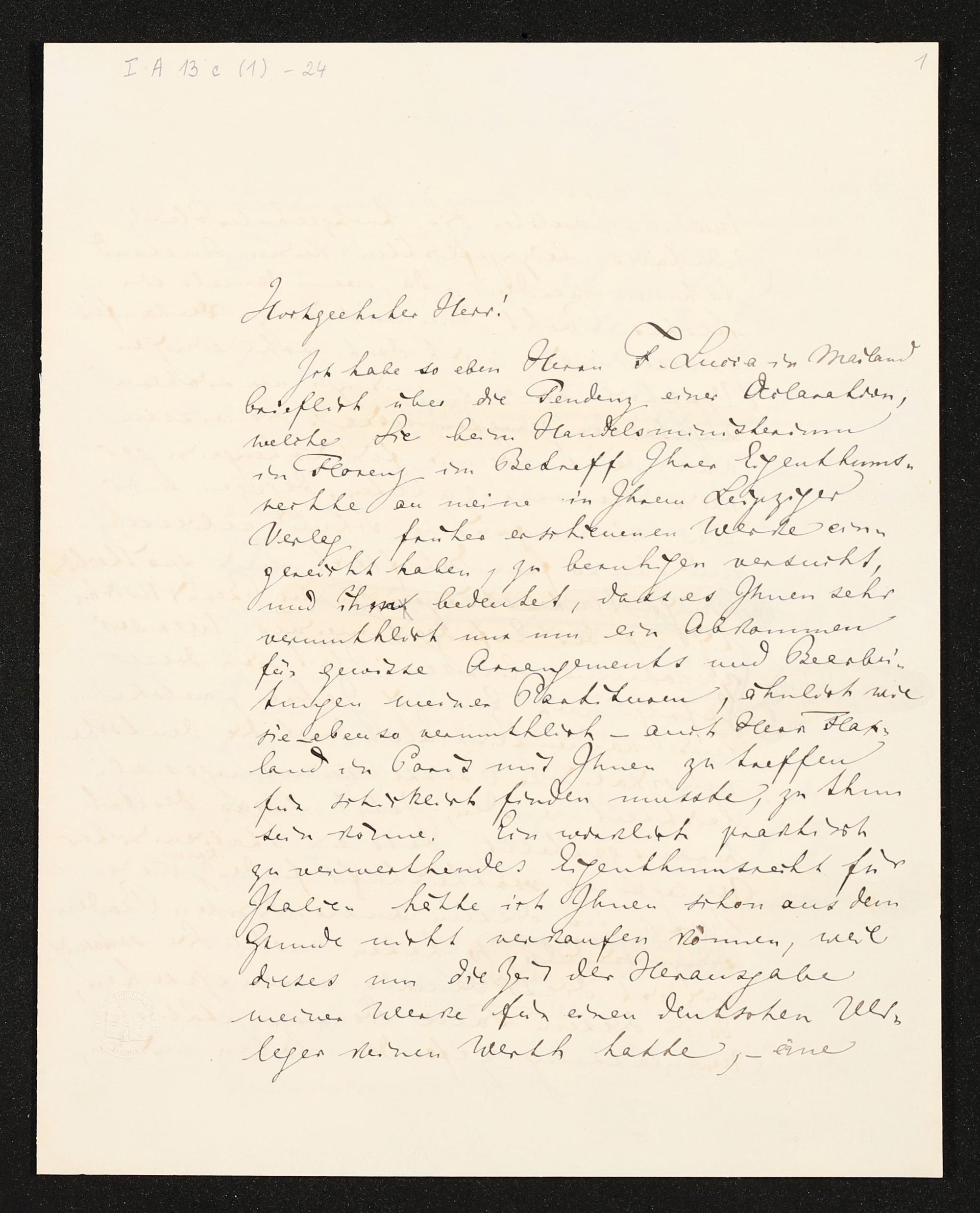 eigenhändiges Briefkonzept von Richard Wagner an Hermann Härtel