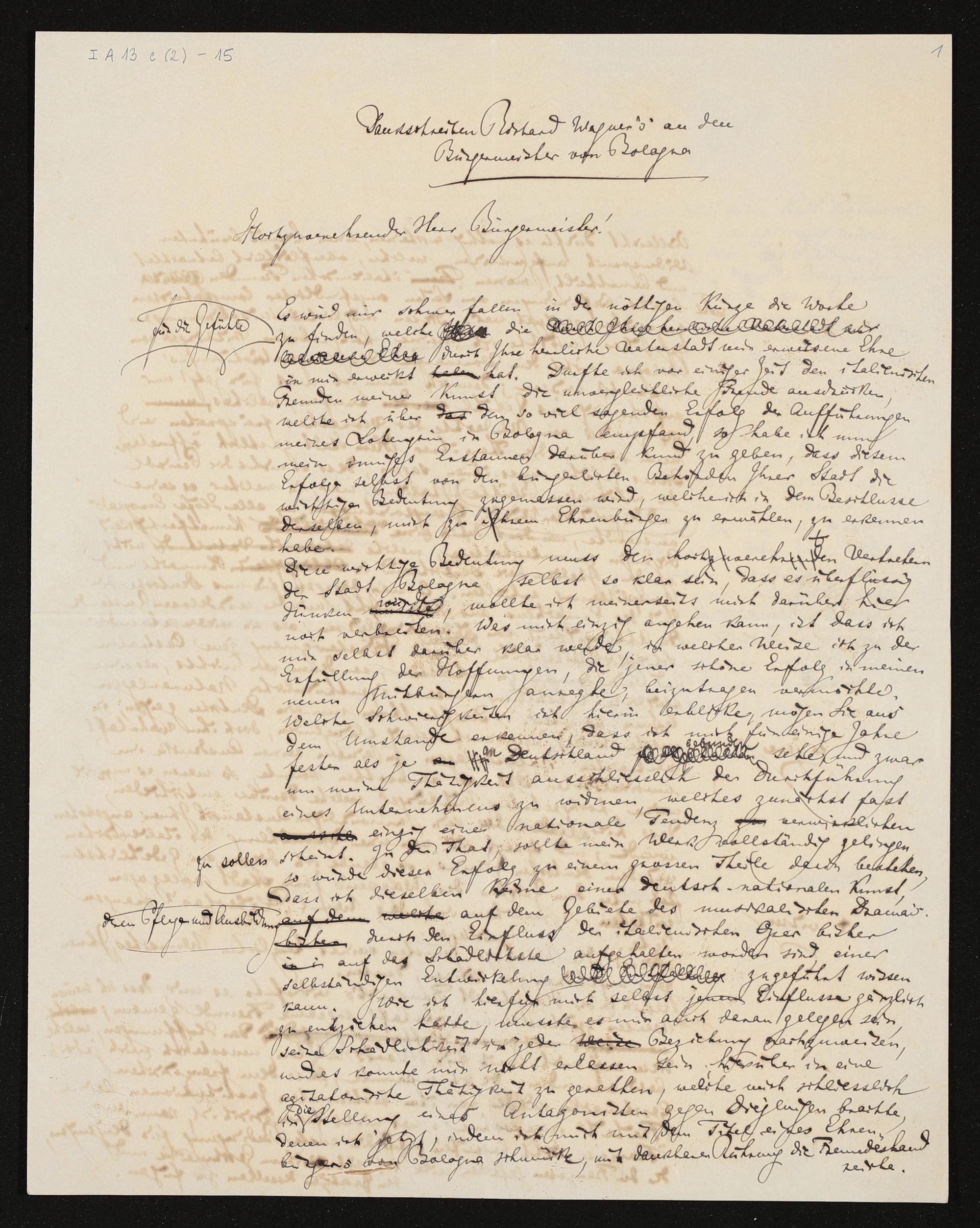 eigenhändiges Briefkonzept von Richard Wagner mutmaßlich an Filippo Lamponi