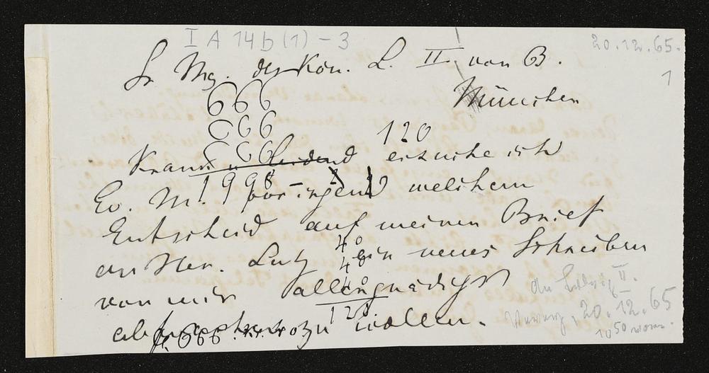 eigenhändiges Briefkonzept von Richard Wagner an König Ludwig II. von Bayern