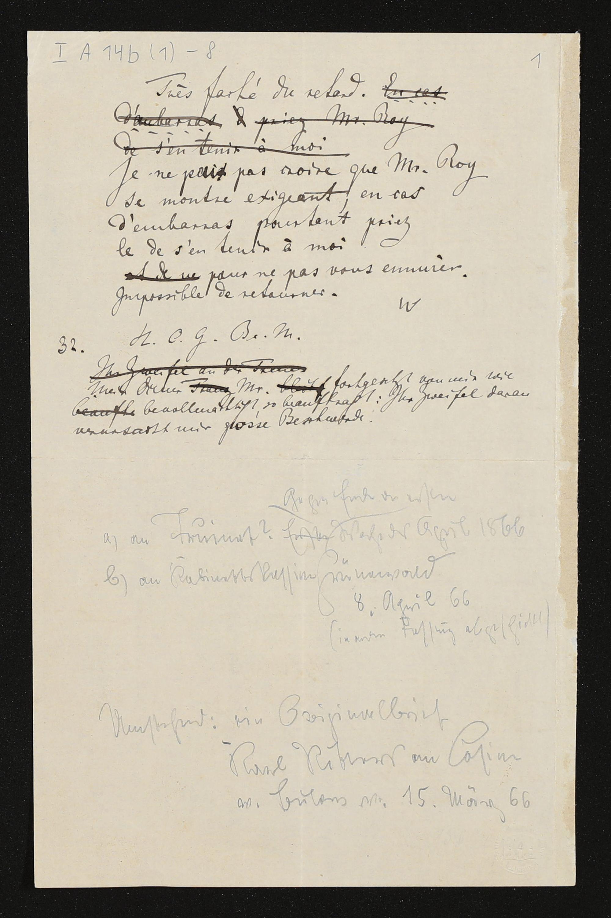 eigenhändiger Brief von einem unbekannten Absender an einen unbekannten Empfänger, eigenhändiger Brief von Carl Ritter an Cosima von Bülow