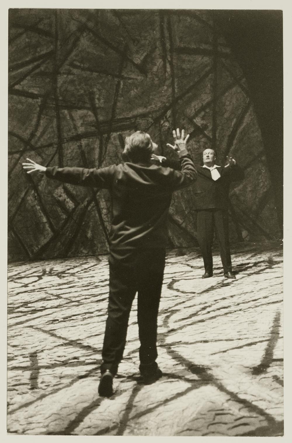 Tristan und Isolde, 3. Aufzug, Wieland Wagner und Wolfgang Windgassen bei einer Probe