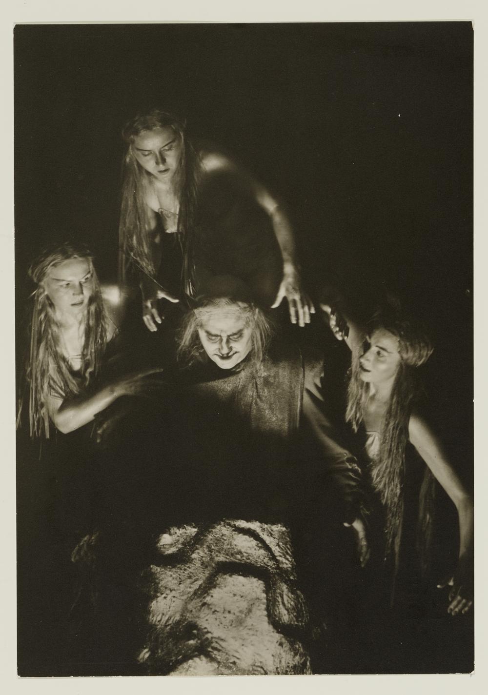 Das Rheingold, 1. Bild, Erika Zimmermann als Woglinde, Hanna Ludwig als Wellgunde, Hertha Töpper als Floßhilde und Gustav Neidlinger als Alberich