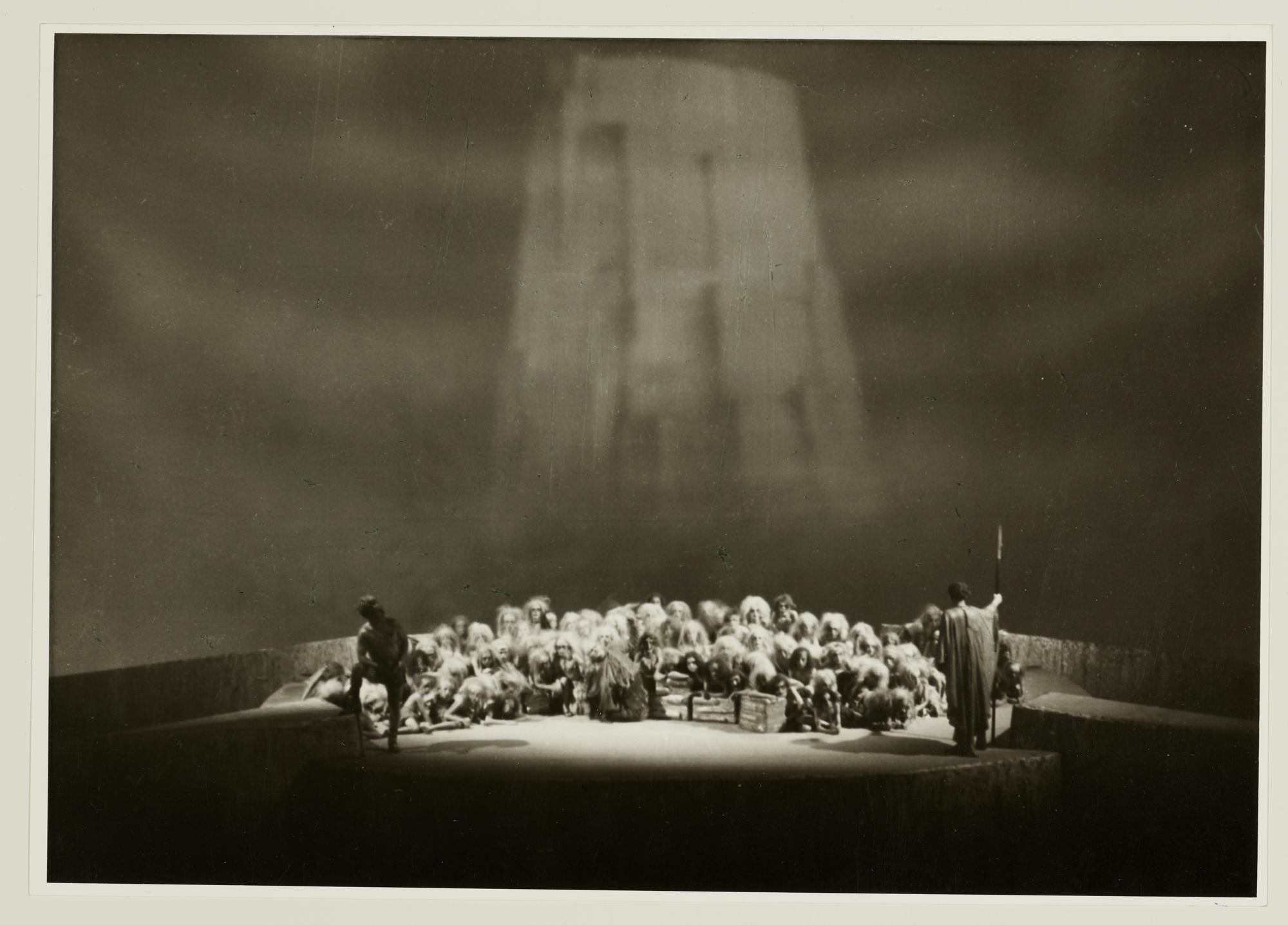 Das Rheingold, 4. Bild, Erich Witte als Loge, Hermann Uhde als Wotan und die Nibelungen