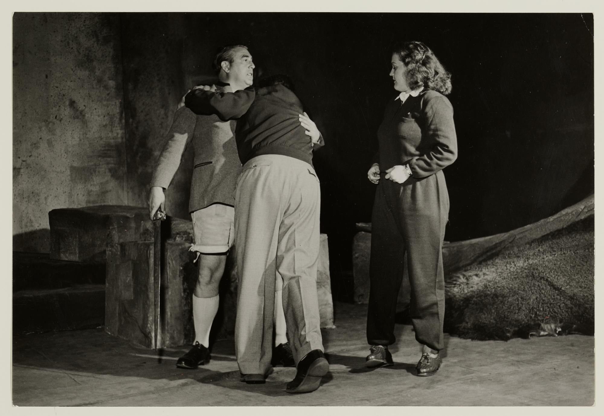 Die Walküre, 1. Aufzug, Günther Treptow als Siegmund, Wieland Wagner und Leonie Rysanek als Sieglinde bei einer Probe