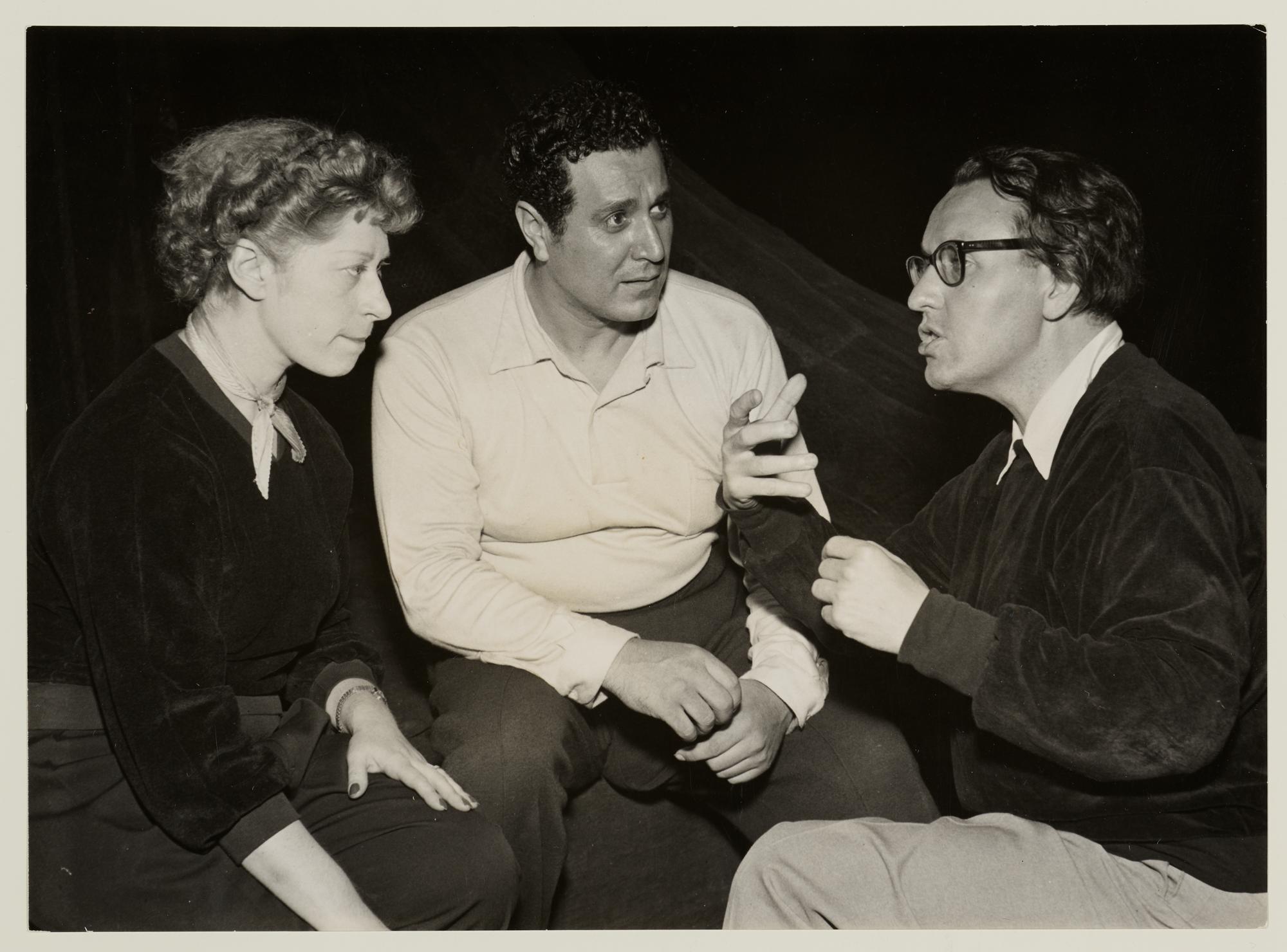 Die Walküre, Regina Resnik als Sieglinde, Ramón Vinay als Siegmund und Wieland Wagner bei einer Probe