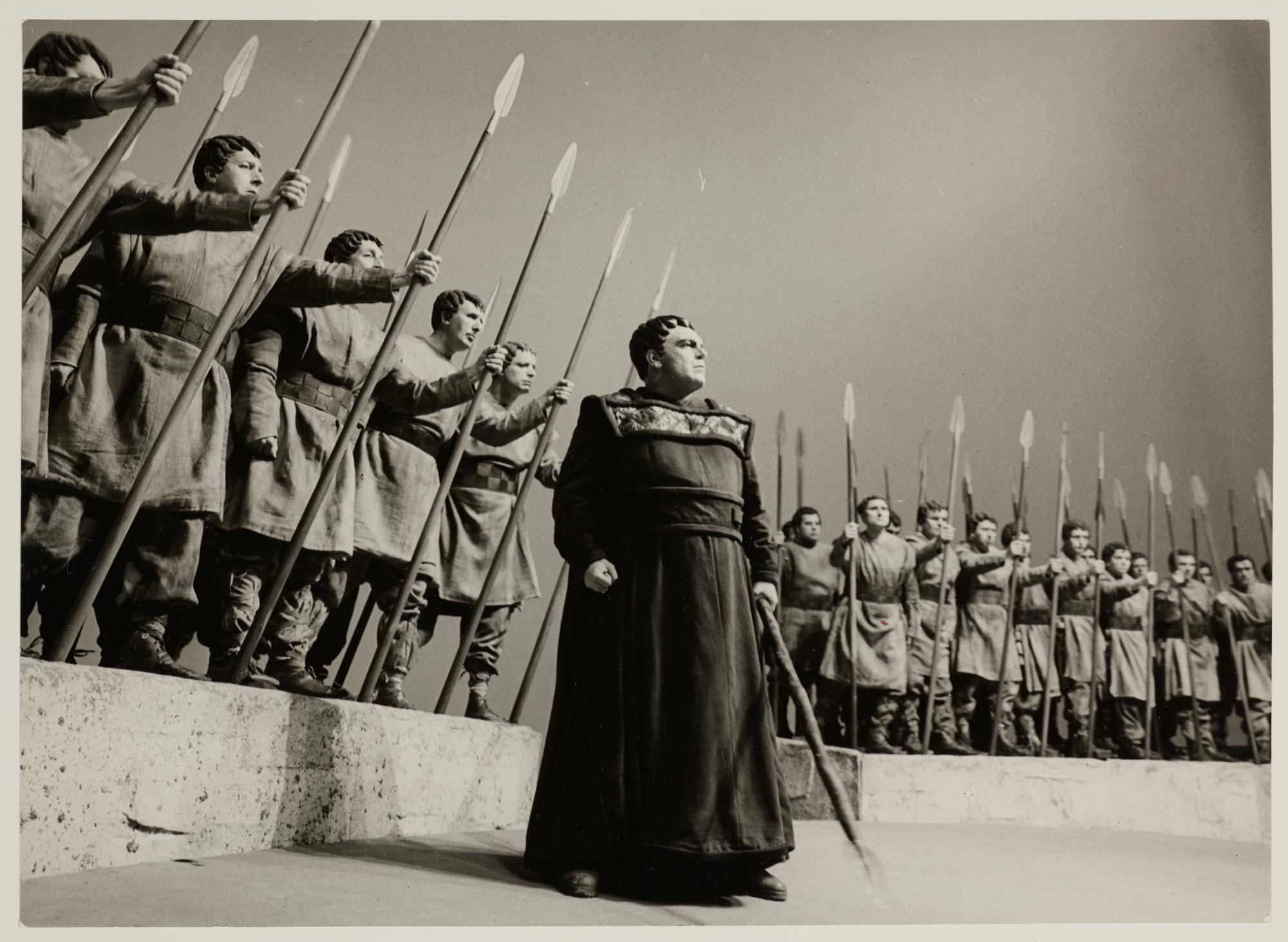 Götterdämmerung, 2. Aufzug, 3. Szene, Josef Greindl als Hagen und die Mannen