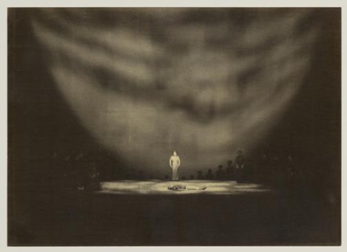 Götterdämmerung, 3. Aufzug, 3. Szene, Gladys Kuchta als Brünnhilde und Ticho Parly als toter Siegfried