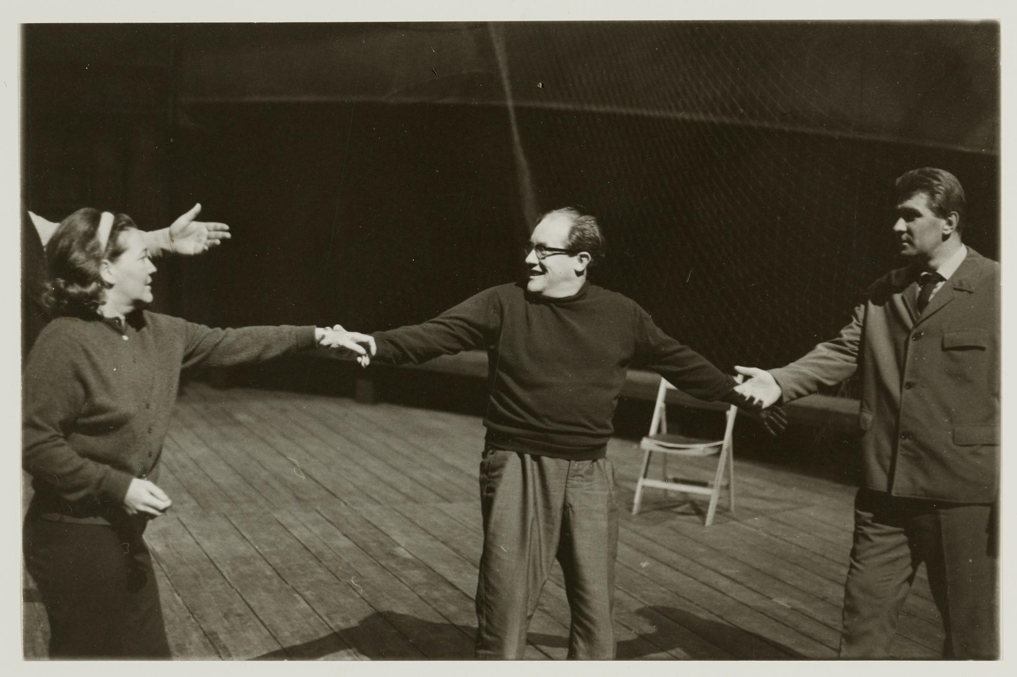 Der fliegende Holländer, Martti Talvela als Daland, Leonie Rysanek als Senta, August Everding und Donald McIntyre als Der Holländer bei einer Probe