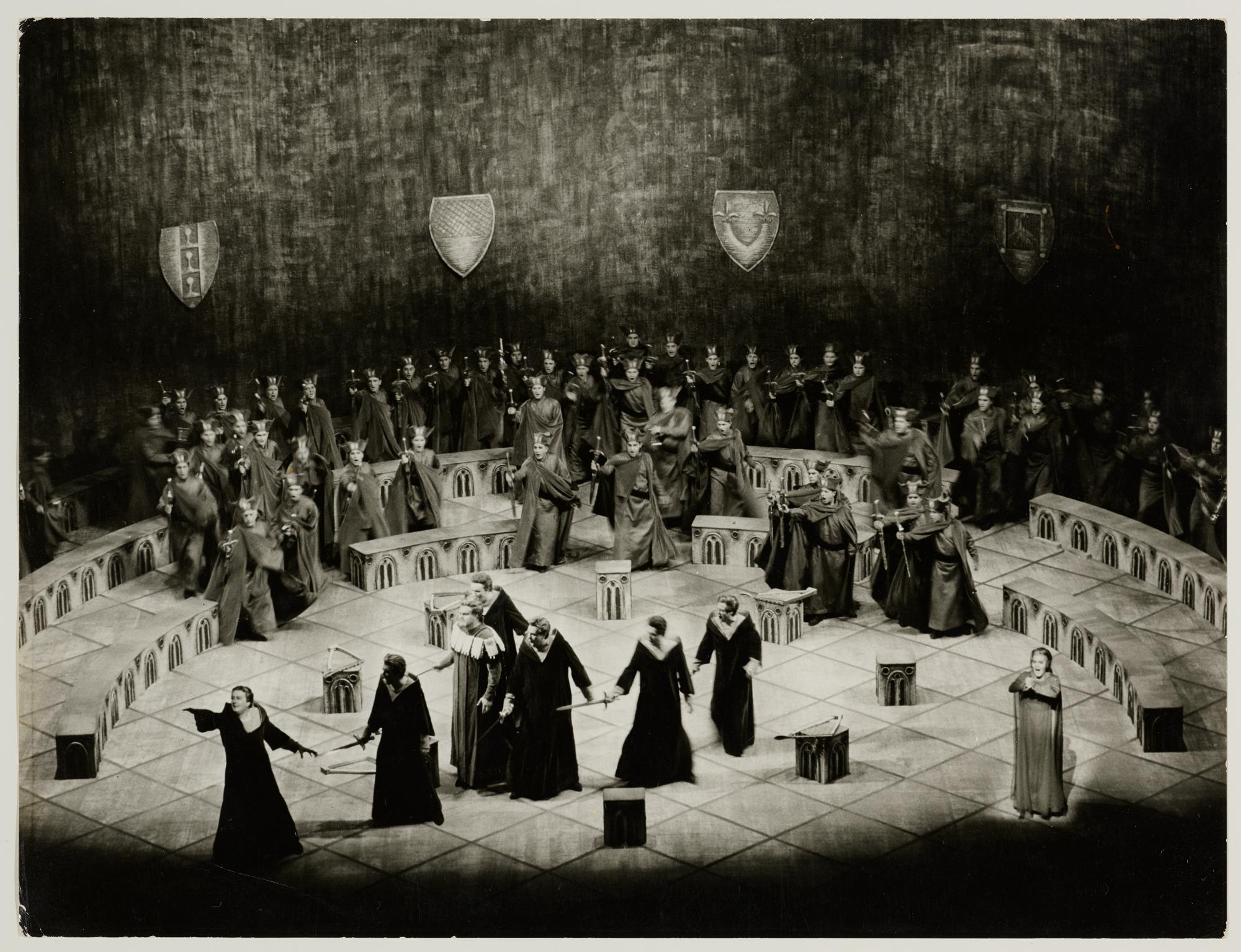 Tannhäuser, 2. Aufzug, 4. Szene, Martti Talvela als Hermann, Landgraf von Thüringen, Wolfgang Windgassen als Tannhäuser, Leonie Rysanek als Elisabeth, die Sänger und die Festgesellschaft