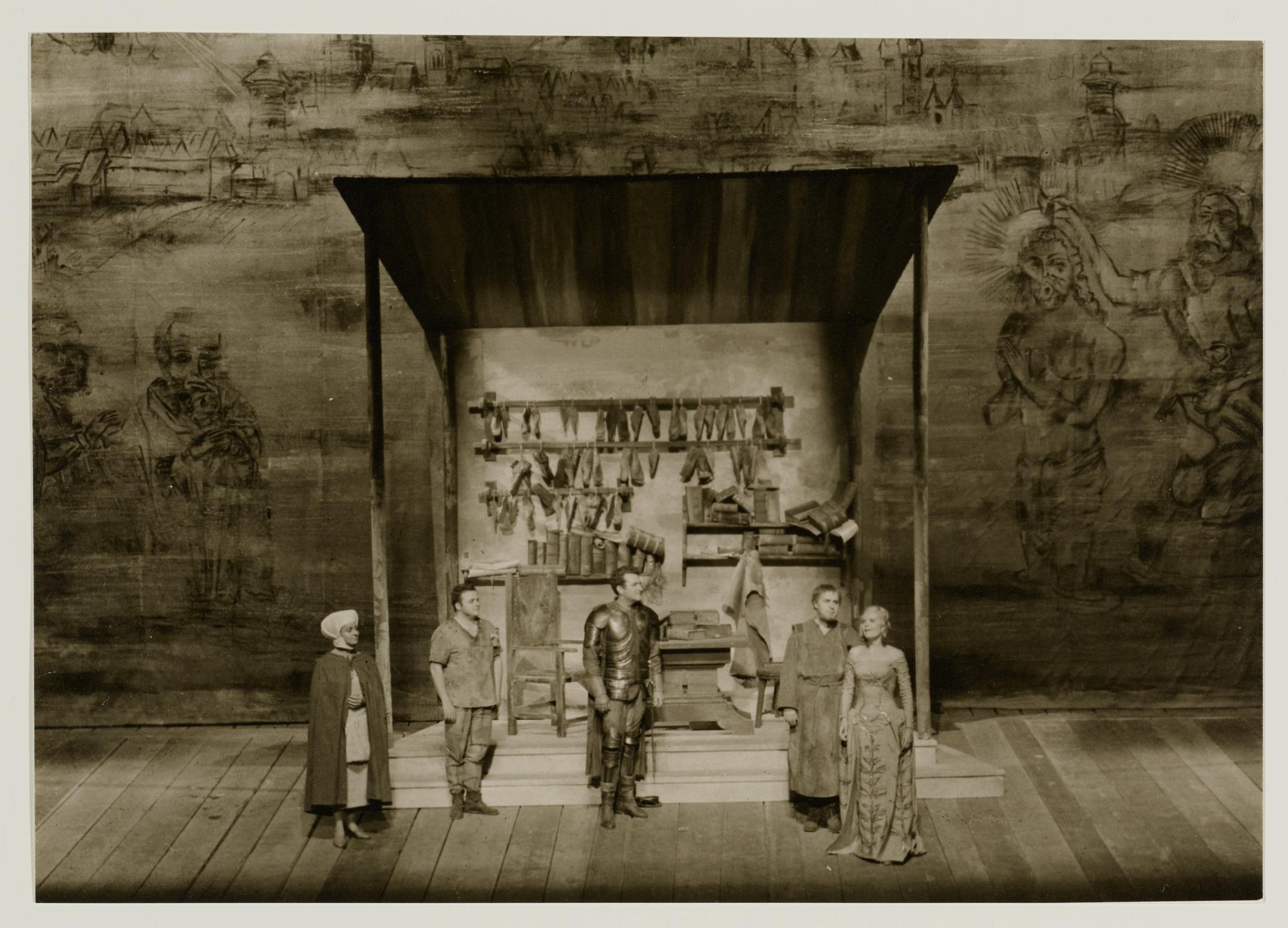 Die Meistersinger von Nürnberg, 3. Aufzug, 4. Szene, Ruth Hesse als Magdalene, Erwin Wohlfahrt als David, Jess Thomas als Walther von Stolzing, Otto Wiener als Hans Sachs und Anja Silja als Eva