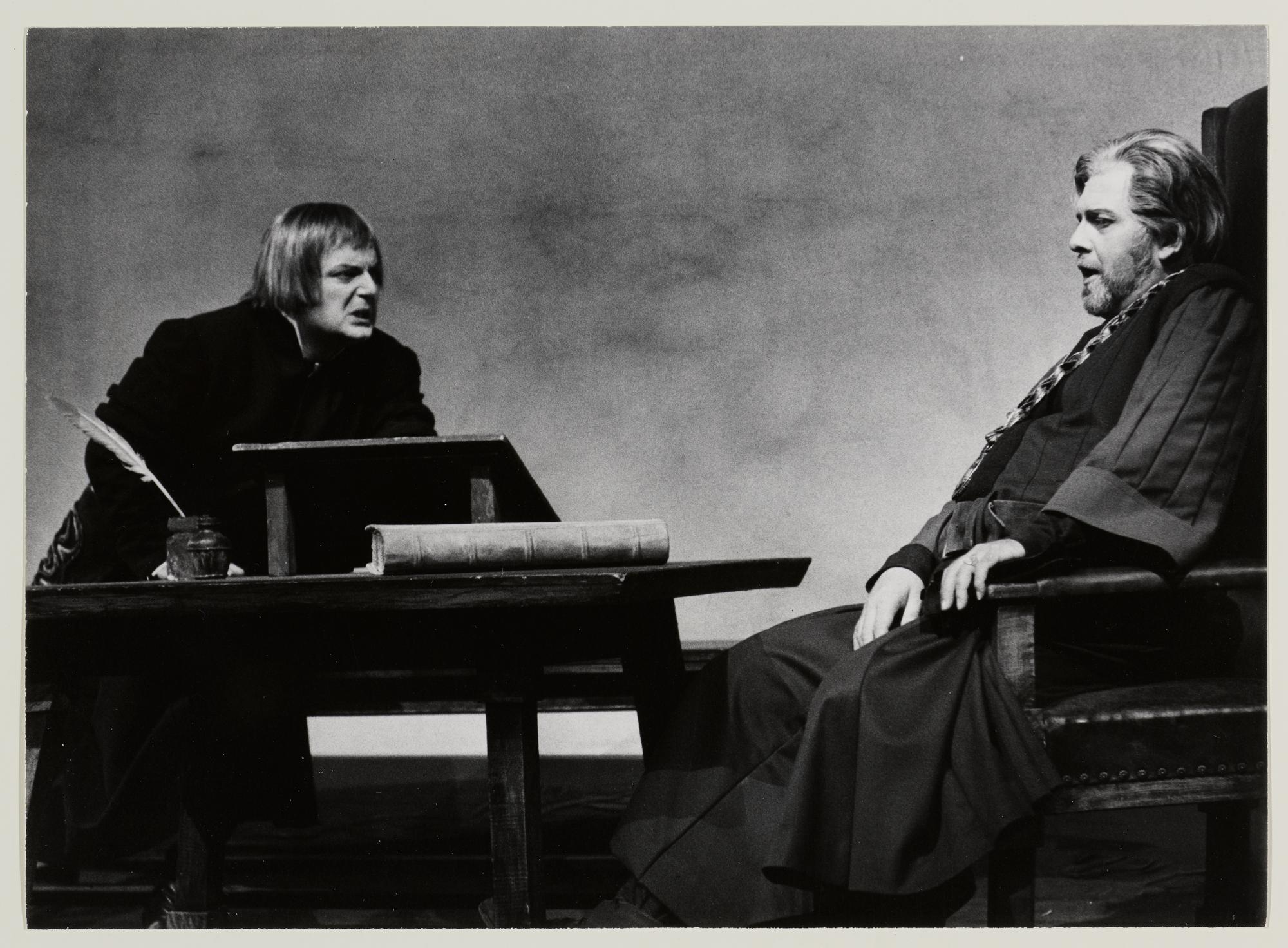 Die Meistersinger von Nürnberg, 3. Aufzug, 2. Szene, Klaus Hirte als Sixtus Beckmesser und Karl Ridderbusch als Hans Sachs