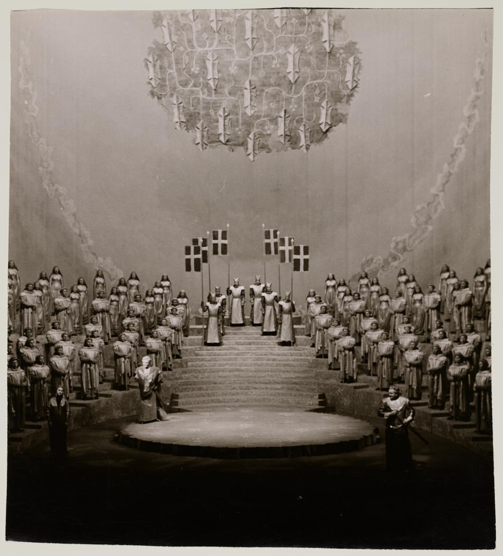Lohengrin, 3. Aufzug, 3. Szene, Elisabeth Grümmer als Elsa von Brabant, Theo Adam als Heinrich der Vogler und Wolfgang Windgassen als Lohengrin
