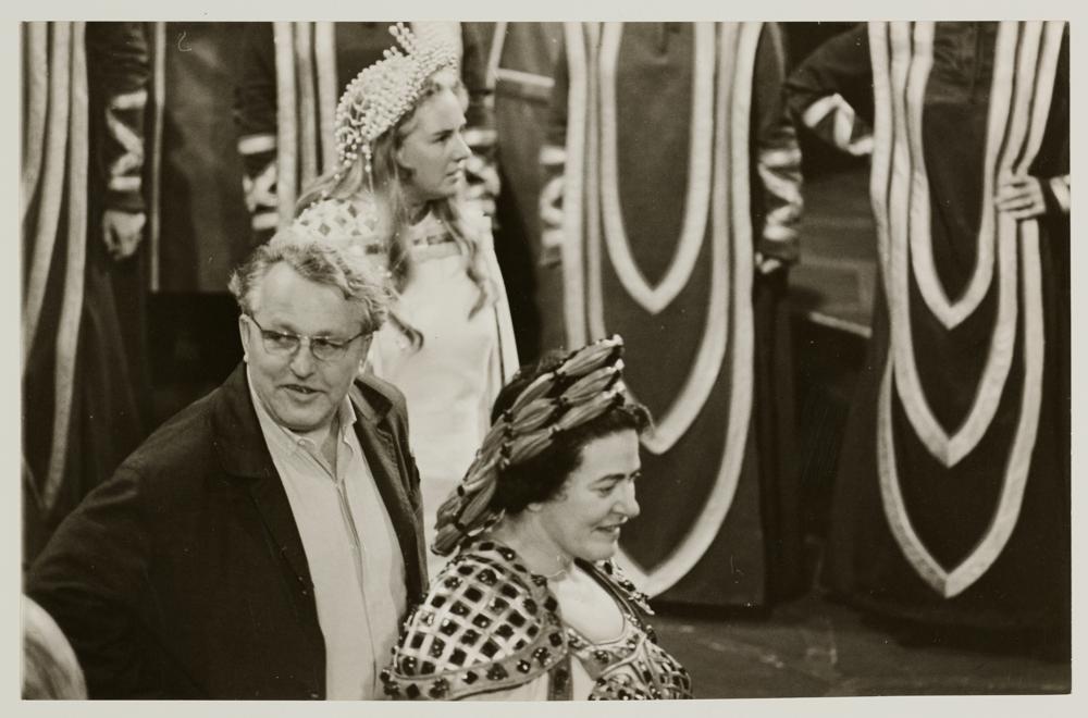 Lohengrin, 2. Aufzug, Grace Hoffman als Ortrud, Heather Harper als Elsa von Brabant und Wolfgang Wagner bei einer Probe