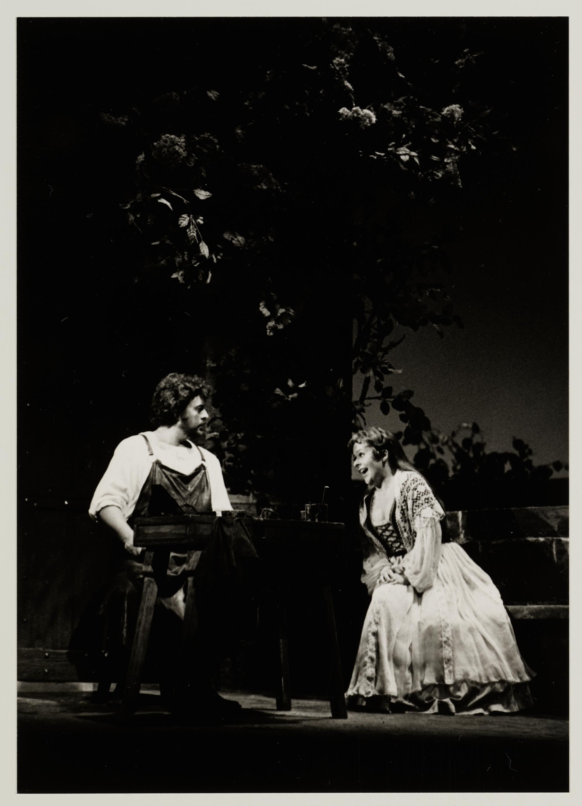 Die Meistersinger von Nürnberg, 2. Aufzug, 4. Szene, Bernd Weikl als Hans Sachs und Mari Anne Häggander als Eva