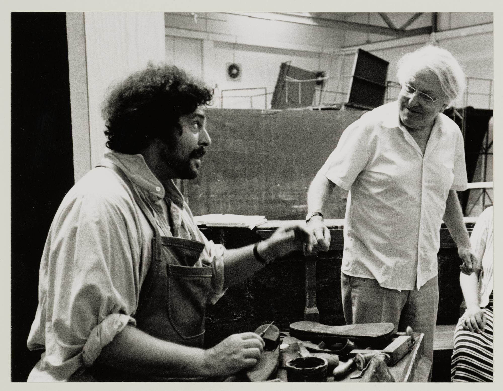 Die Meistersinger von Nürnberg, Bernd Weikl als Hans Sachs und Wolfgang Wagner bei einer Probe