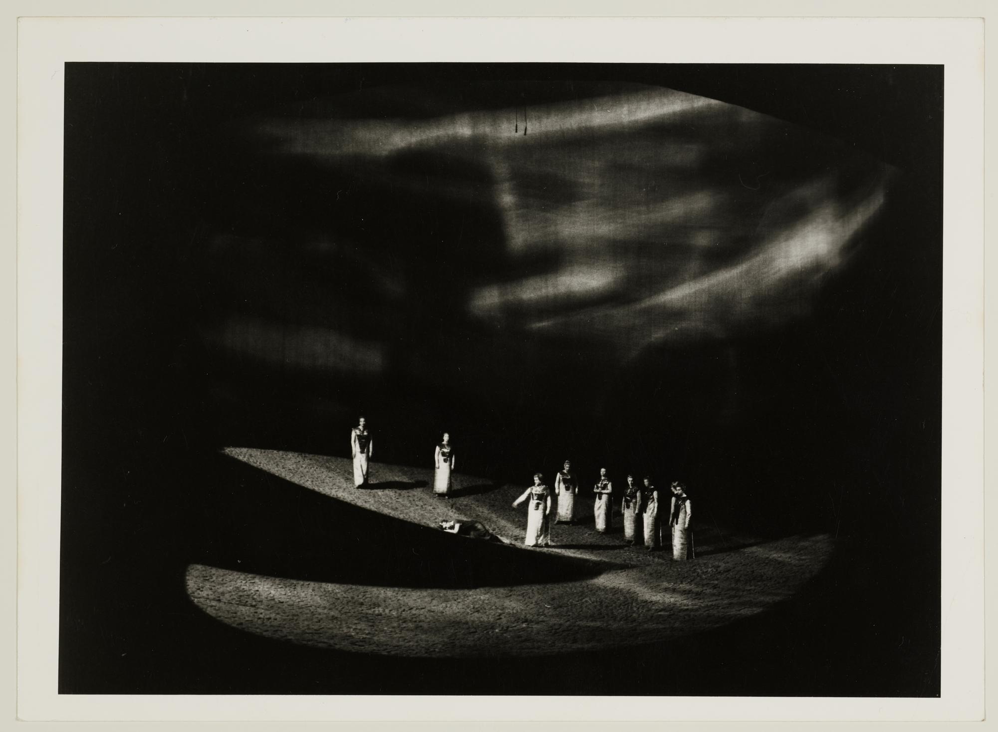 Die Walküre, 3. Aufzug, 1. Szene, Aase Nordmo-Loevberg als Sieglinde, Birgit Nilsson als Brünnhilde und die Walküren