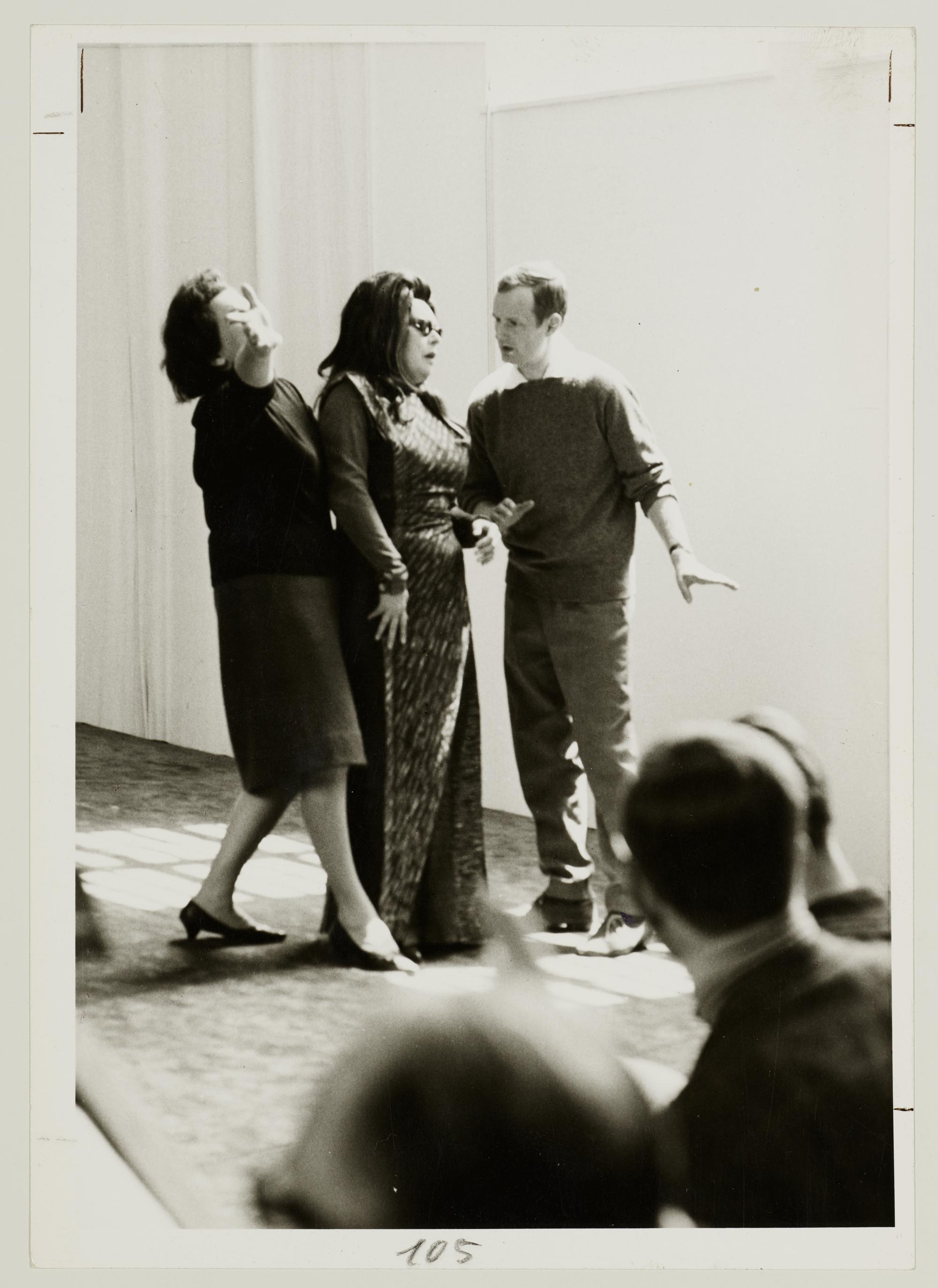 Götterdämmerung, 1. Aufzug, Birgit Nilsson als Brünnhilde, Martha Mödl als Waltraute und Hans-Peter Lehmann bei einer Probe