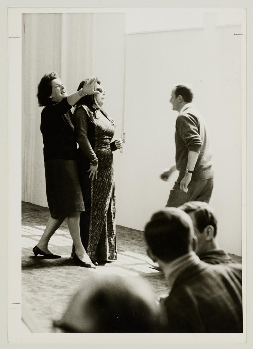 Götterdämmerung, 1. Aufzug, Birgit Nilsson als Brünnhilde, Martha Mödl als Waltraute und Hans-Peter Lehmann bei einer Probe
