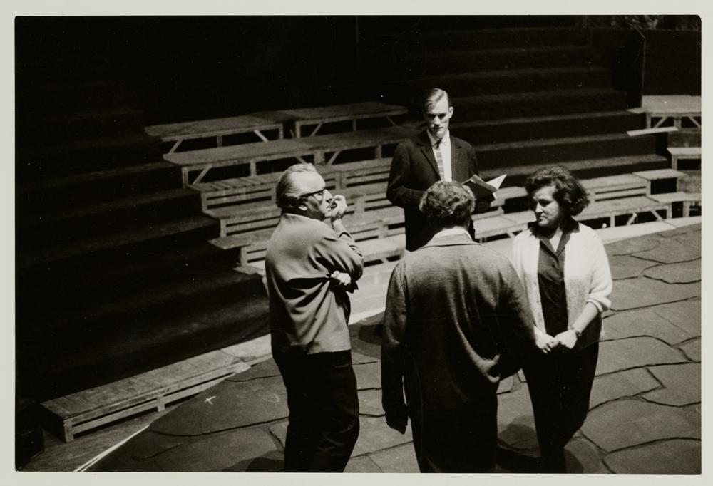 Götterdämmerung, Wieland Wagner, Wolfgang Windgassen als Siegfried und Birgit Nilsson als Brünnhilde bei einer Probe