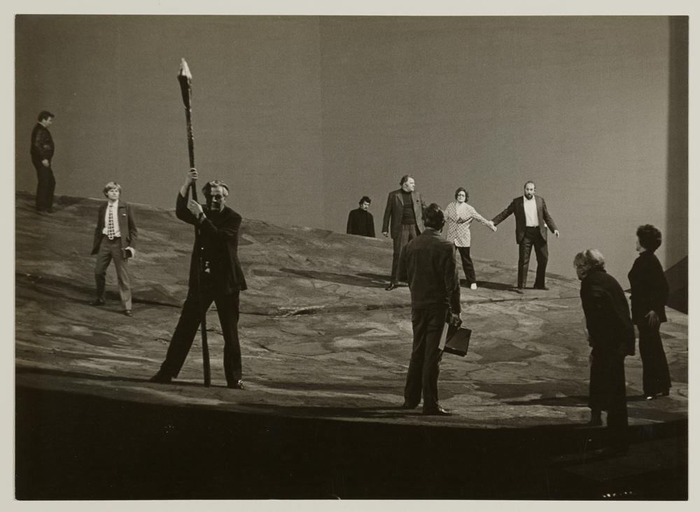 Das Rheingold, 2. Bild, Wolfgang Wagner bei einer Probe mit Solisten