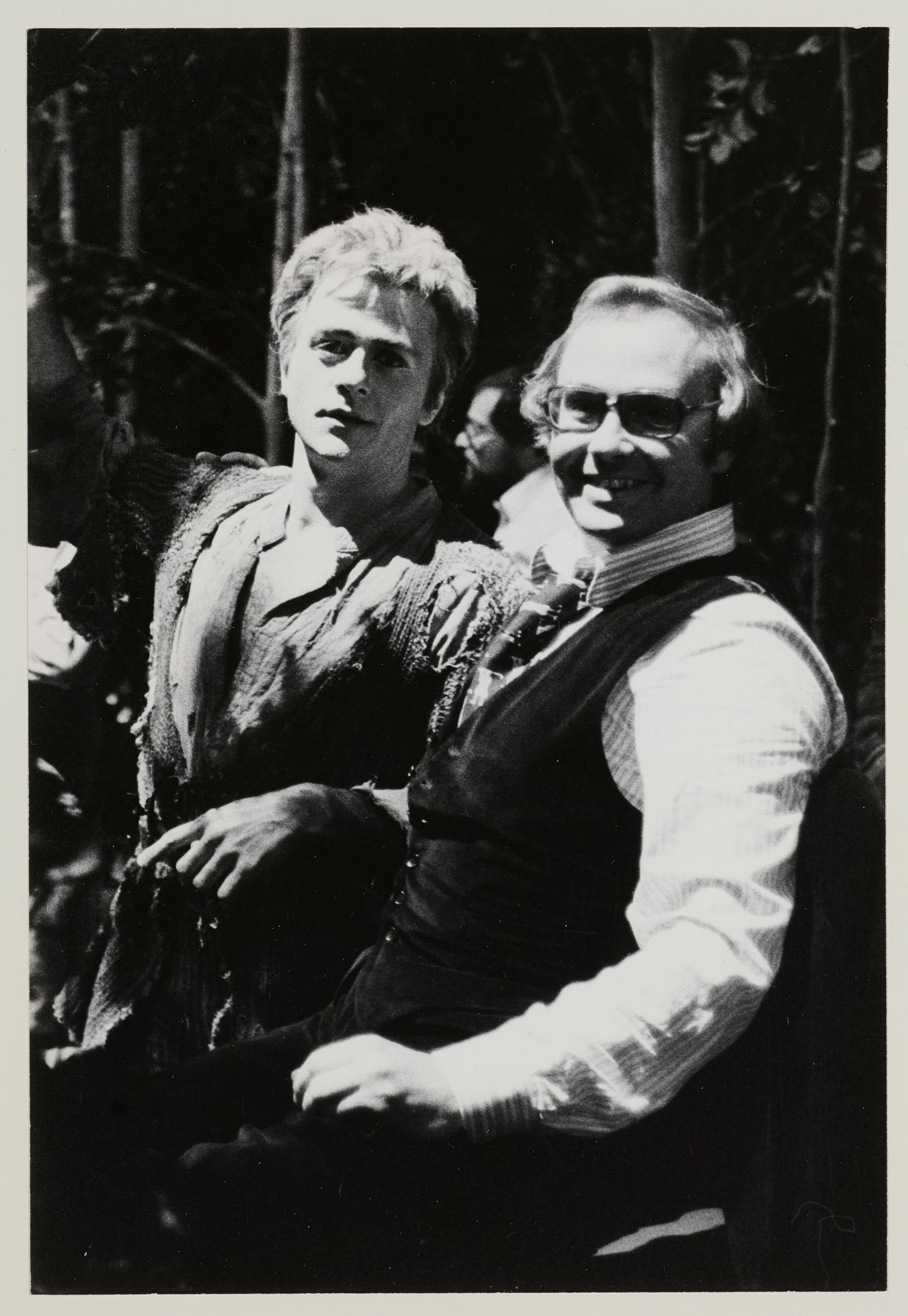 Siegfried, Patrice Chéreau als Siegfried (Schauspiel) und René Kollo als Siegfried (Gesang) nach der Vorstellung vom 20.08.1977