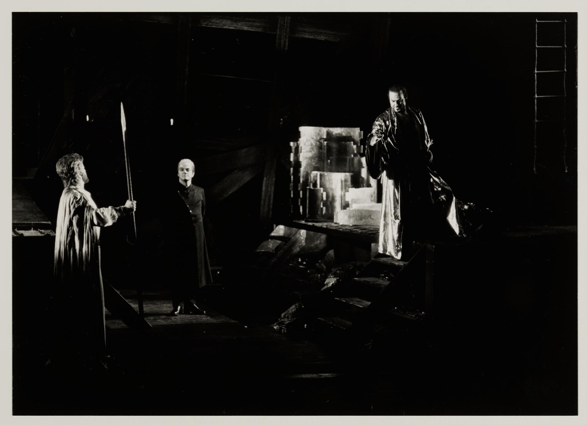 Das Rheingold, 3. Bild, Siegmund Nimsgern als Wotan, Manfred Jung als Loge und Hermann Becht als Alberich