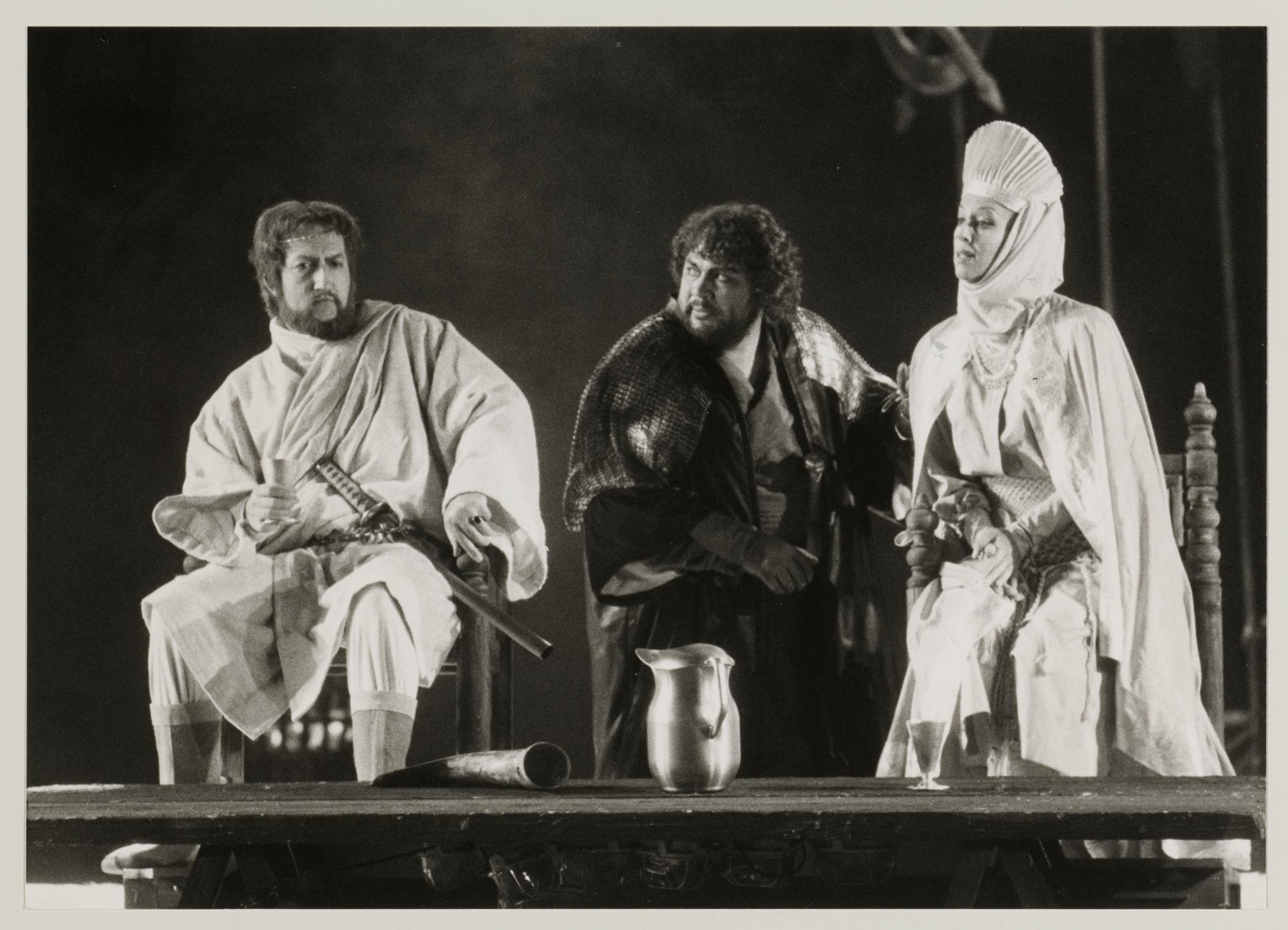 Götterdämmerung, 1. Aufzug, 1. Szene, Bent Norup als Gunther, Aage Haugland als Hagen und Josephine Barstow als Gutrune