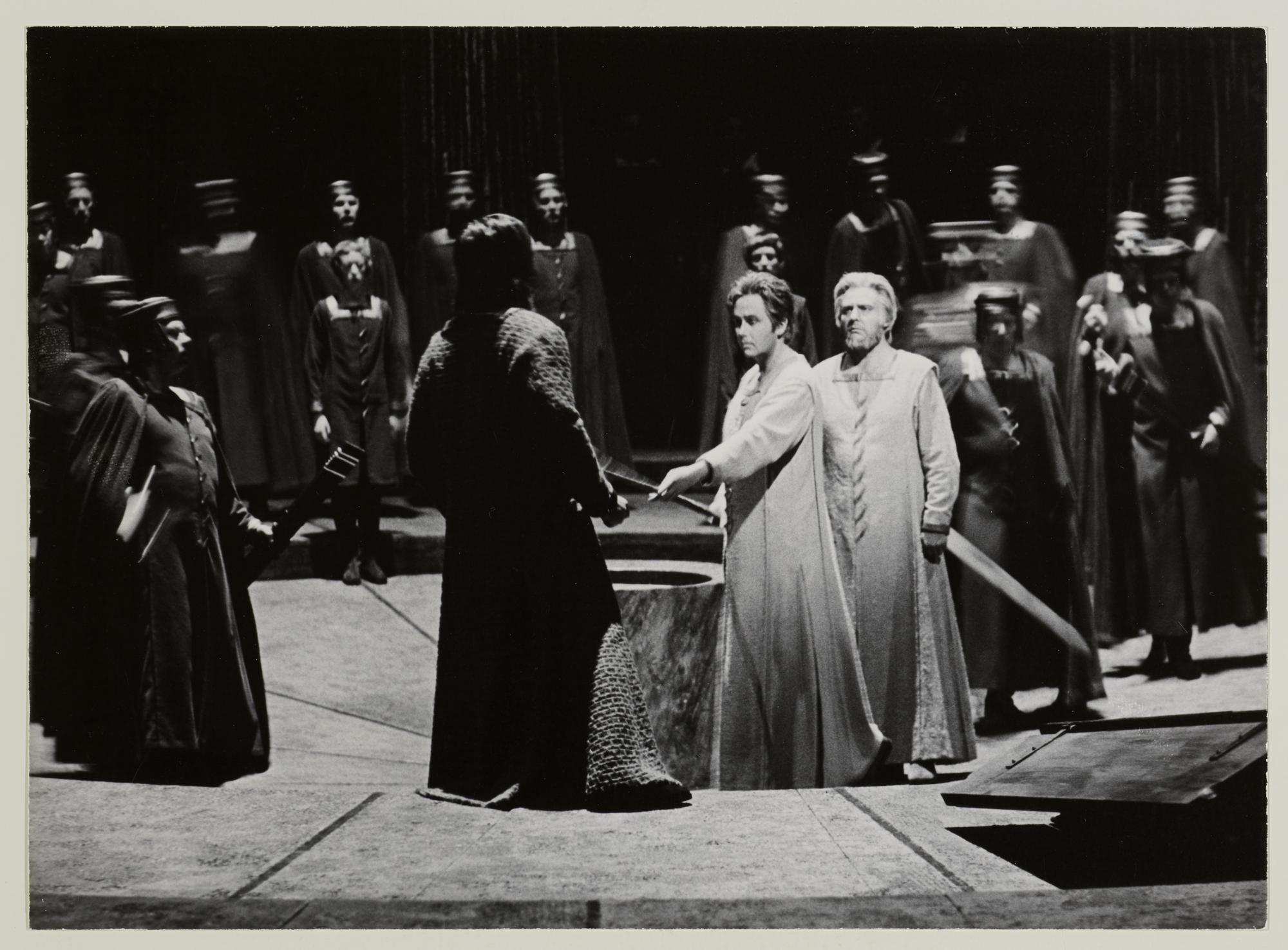Parsifal, 3. Aufzug, Gralstempel, Bernd Weikl als Amfortas, René Kollo als Parsifal und Hans Sotin als Gurnemanz