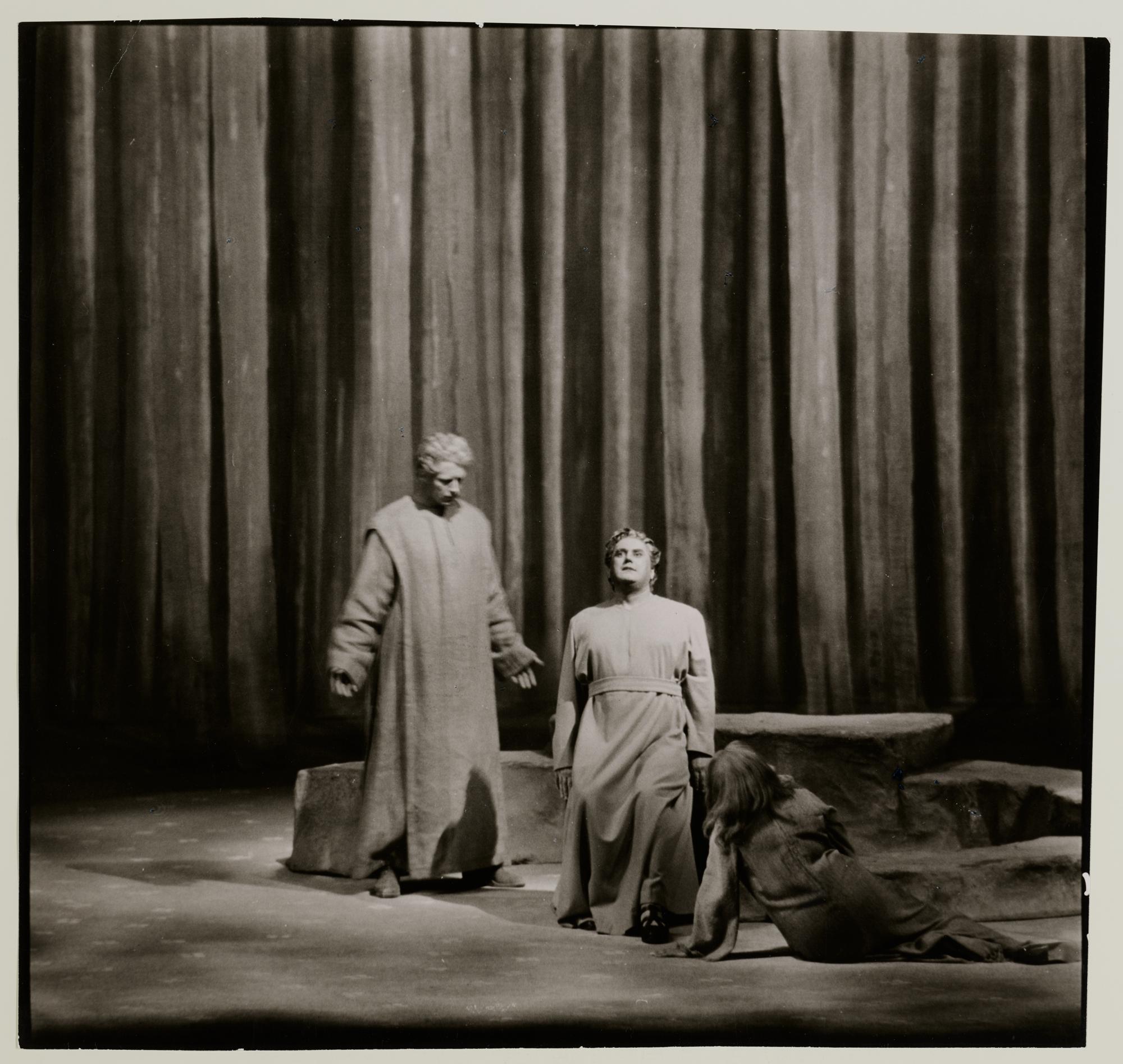 Parsifal, 3. Aufzug, Karfreitagsaue, Jerome Hines als Gurnemanz, Hans Beirer als Parsifal und Régine Crespin als Kundry