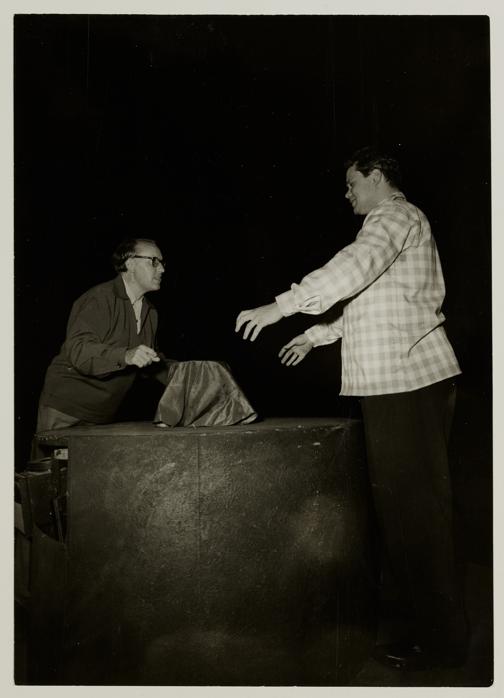 Parsifal, Wieland Wagner und Dietrich Fischer-Dieskau als Amfortas bei einer Probe