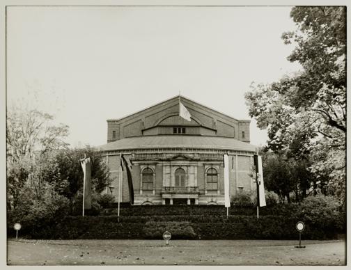 Das Festspielhaus mit Trauerbeflaggung anläßlich des Todes Wieland Wagners