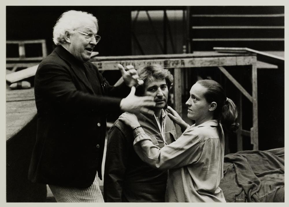 Parsifal, Wolfgang Wagner, Siegfried Jerusalem als Parsifal und Dunja Vejcovic bei einer Probe