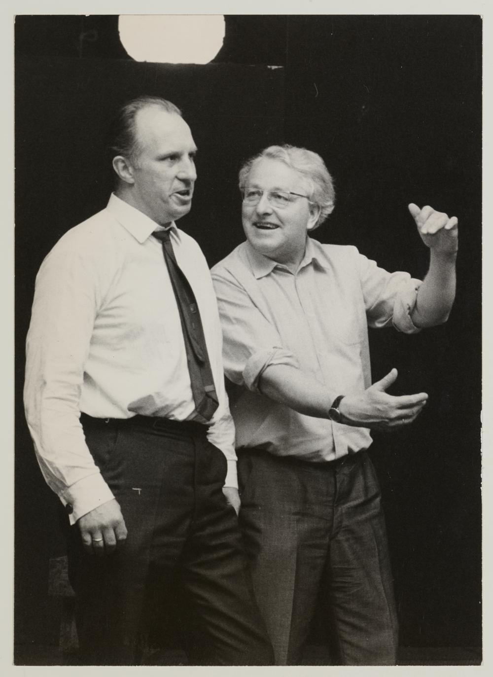 Die Meistersinger von Nürnberg, Norman Bailey als Hans Sachs und Wolfgang Wagner bei einer Probe