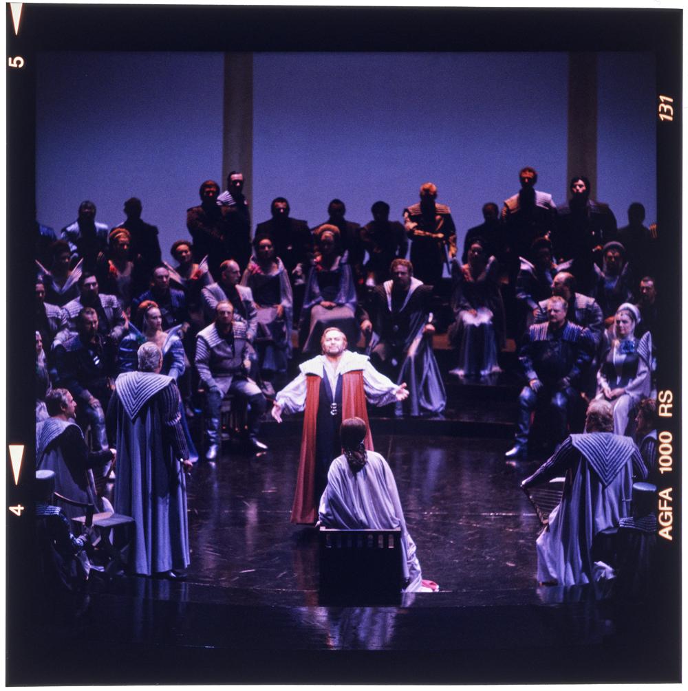 Tannhäuser, 2. Aufzug, 4. Szene, Cheryl Studer als Elisabeth, Richard Versalle als Tannhäuser und Hans Sotin als Hermann, Landgraf von Thüringen