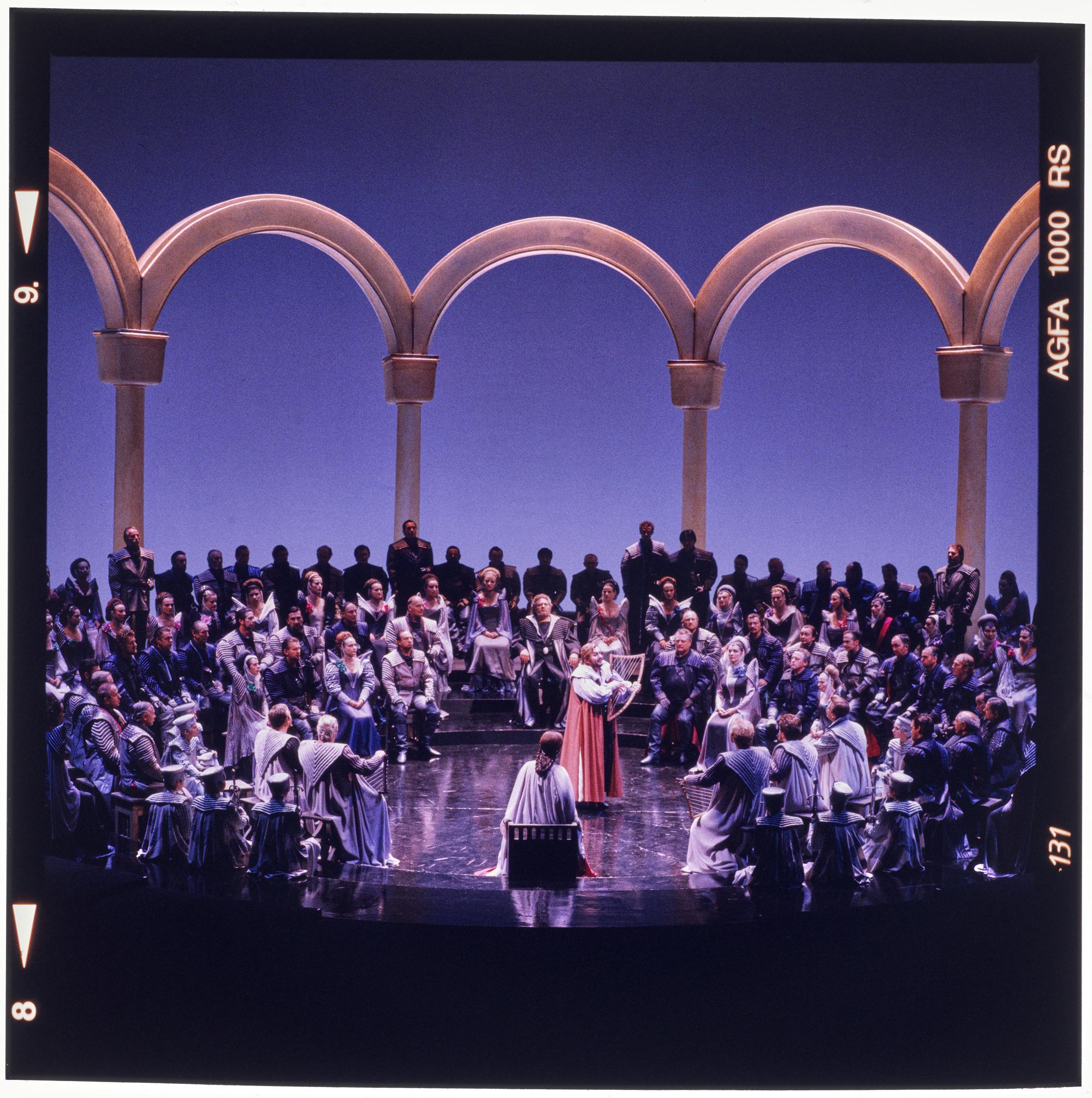 Tannhäuser, 2. Aufzug, 4. Szene, Cheryl Studer als Elisabeth, Richard Versalle als Tannhäuser und Hans Sotin als Hermann, Landgraf von Thüringen