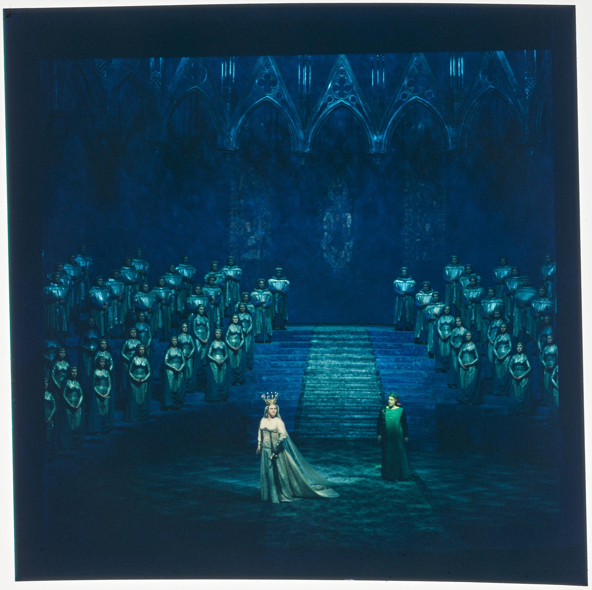 Lohengrin, 2. Aufzug, 5. Szene, Aase Nordmo-Lövberg als Elsa von Brabant und Astrid Varnay als Ortrud
