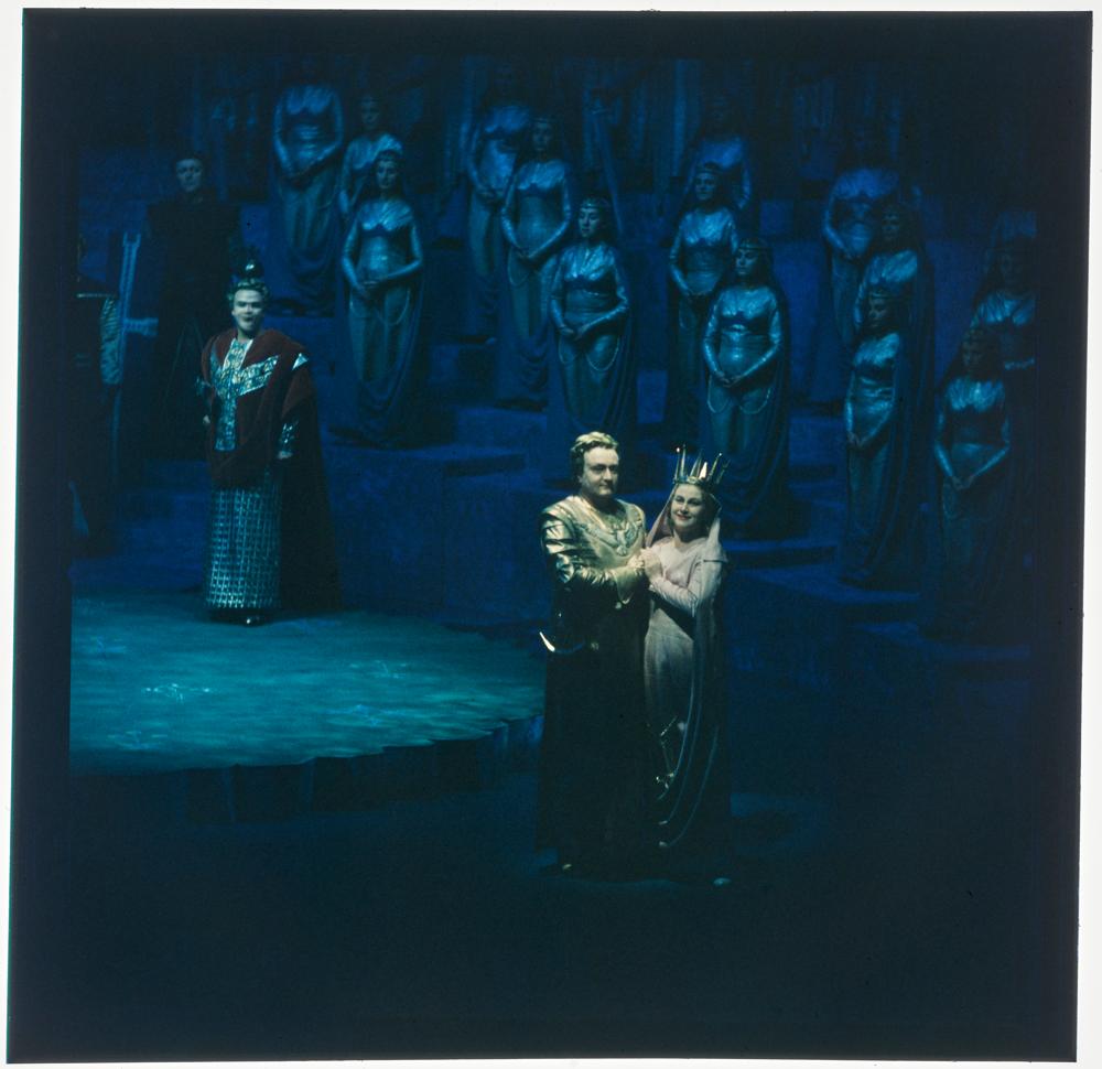 Lohengrin, 1. Aufzug, 3. Szene, Wolfgang Windgassen als Lohengrin, Aase Nordmo-Lövberg als Elsa von Brabant und Theo Adam als Heinrich der Vogler