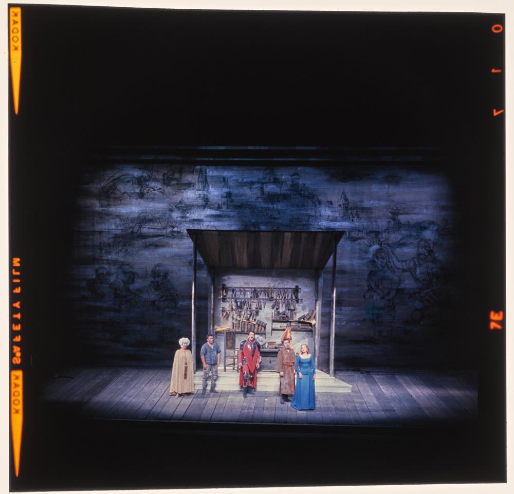 Die Meistersinger von Nürnberg, 3. Aufzug, 4. Szene, Ruth Hesse als Magdalene, Erwin Wohlfahrt als David, Jess Thomas als Walther von Stolzing, Otto Wiener als Hans Sachs und Anja Silja als Eva