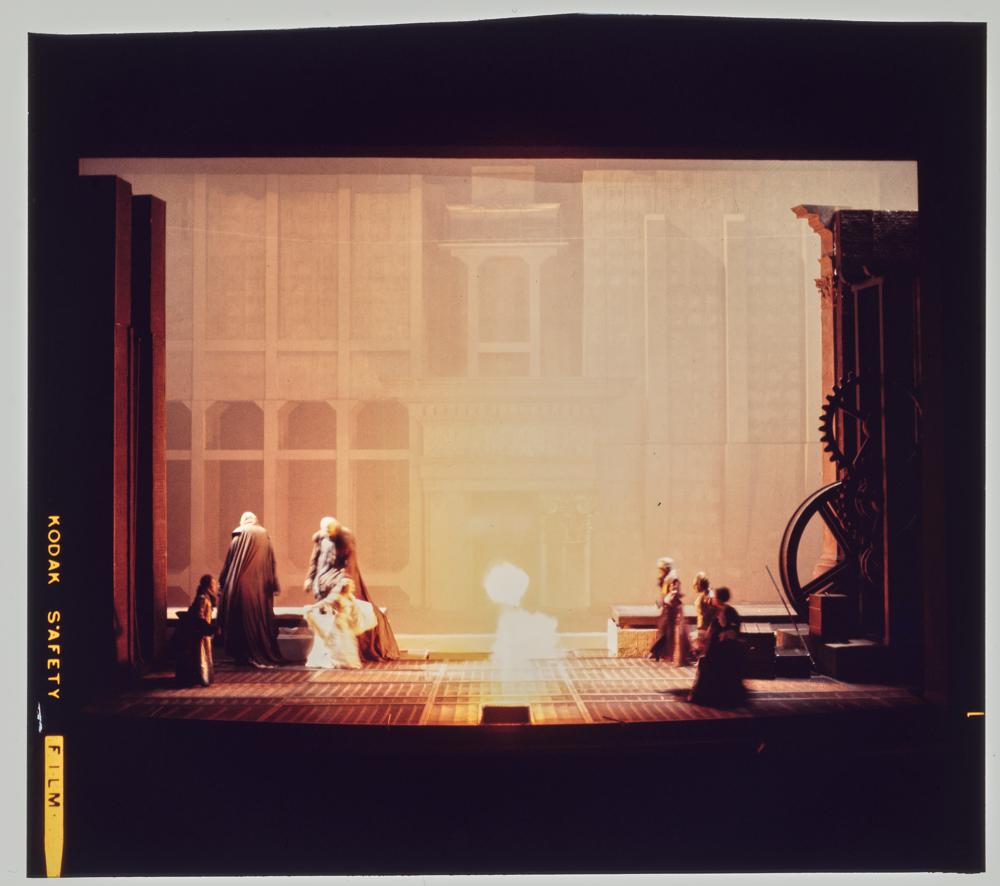 Das Rheingold, 2. Bild, Martin Egel als Donner, Carmen Reppel als Freia, Siegfried Jerusalem als Froh und Eva Randová als Fricka